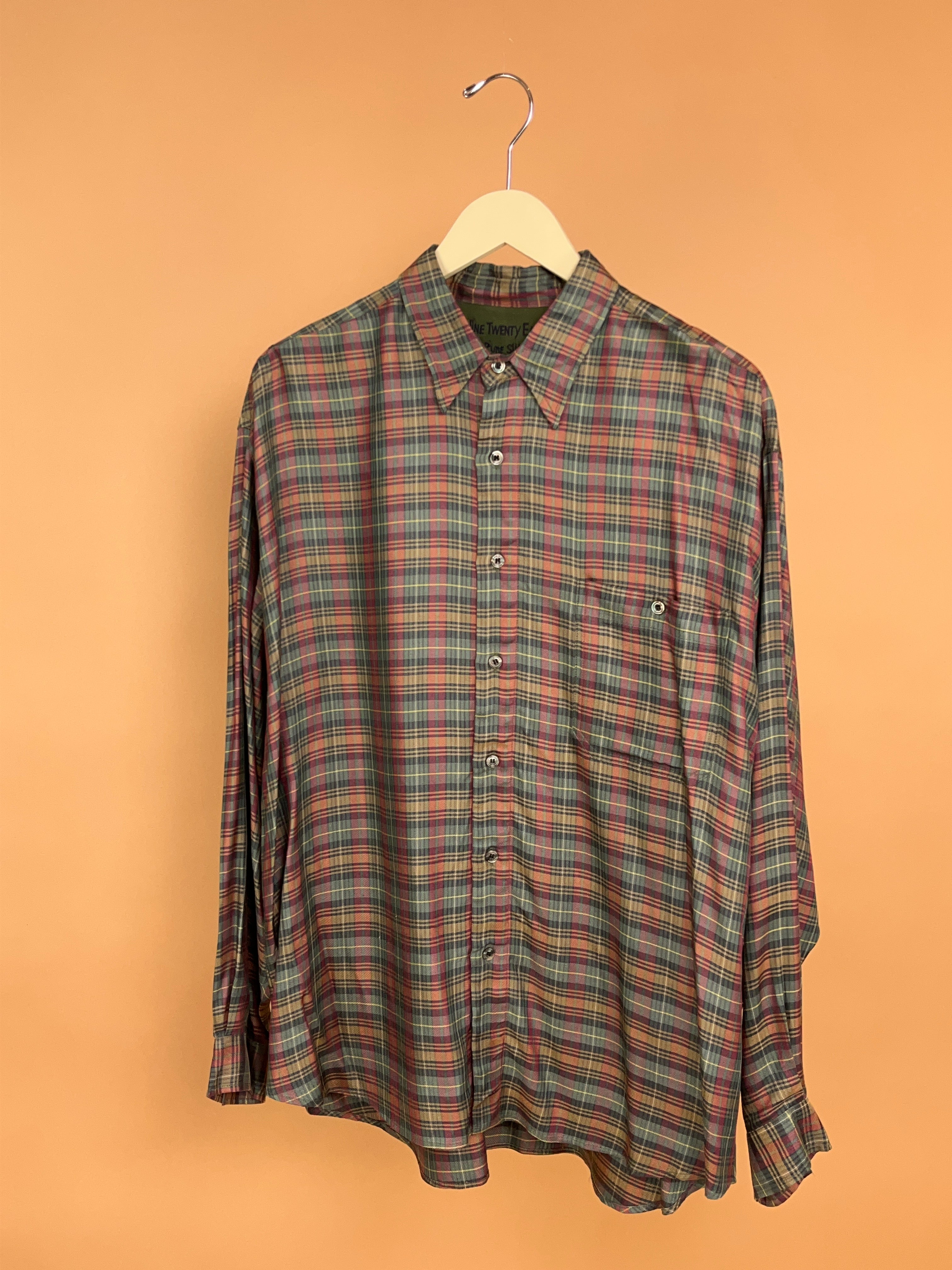 This is a stunning 'Nine Twenty East' 100% silk, plaid shirt in mint vintage condition. This shirt is a true work of art, the colours, the fit, and the way it feels will have you wearing this shirt non stop. A timeless and classic piece.