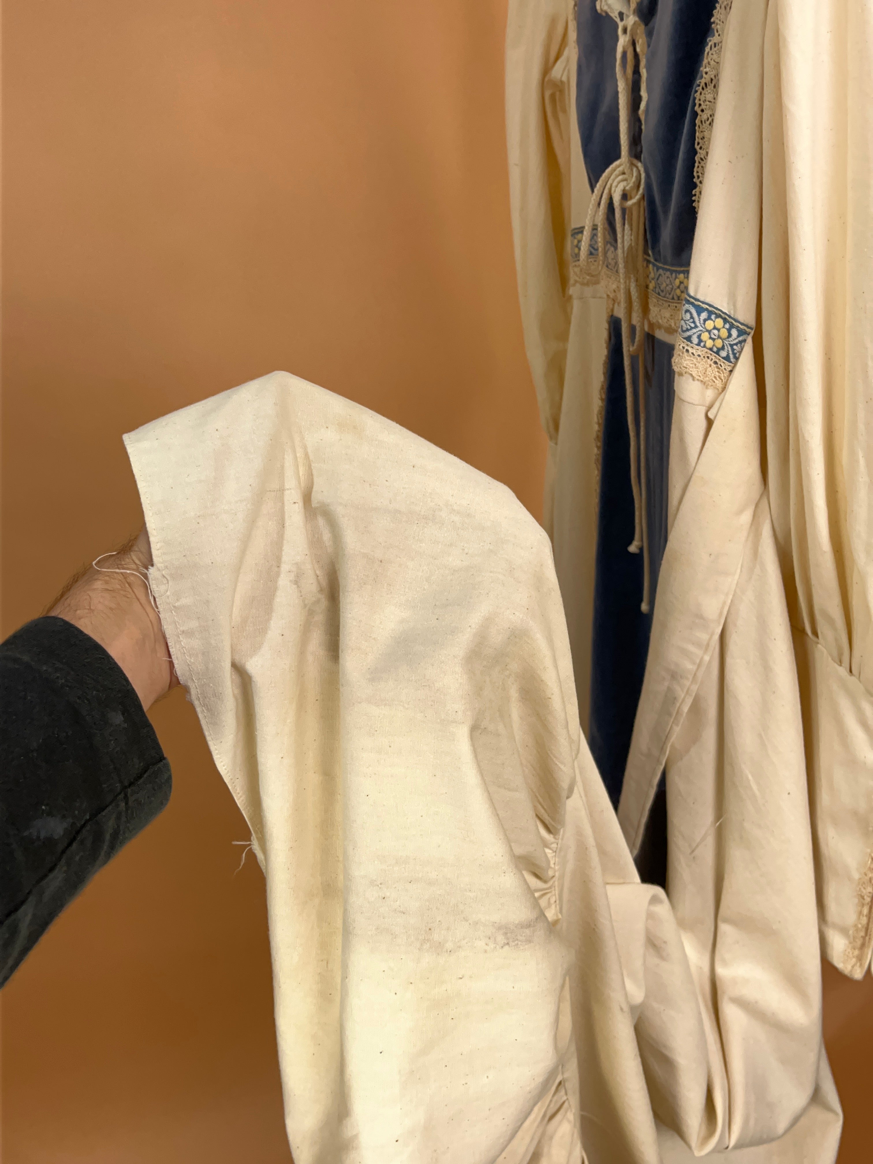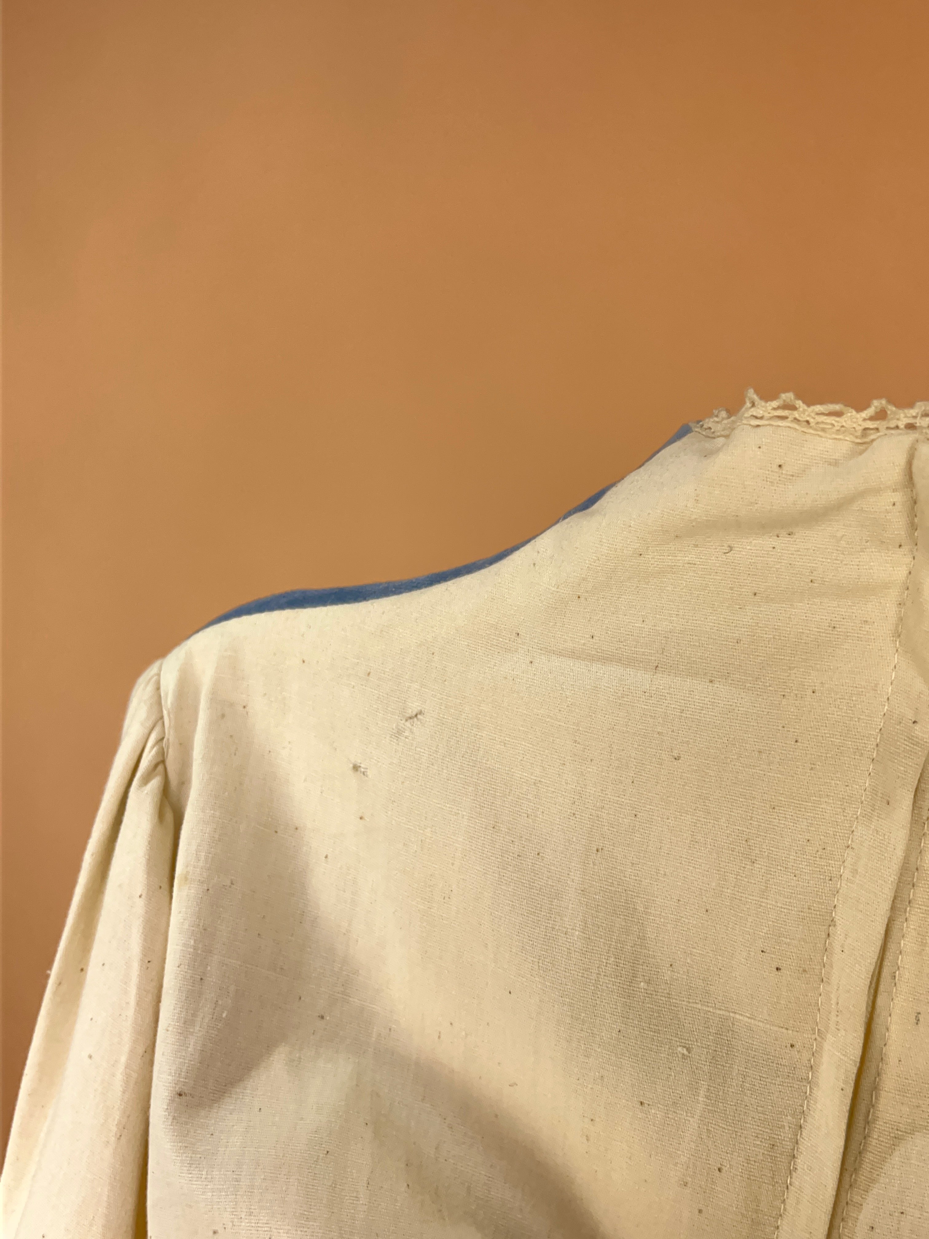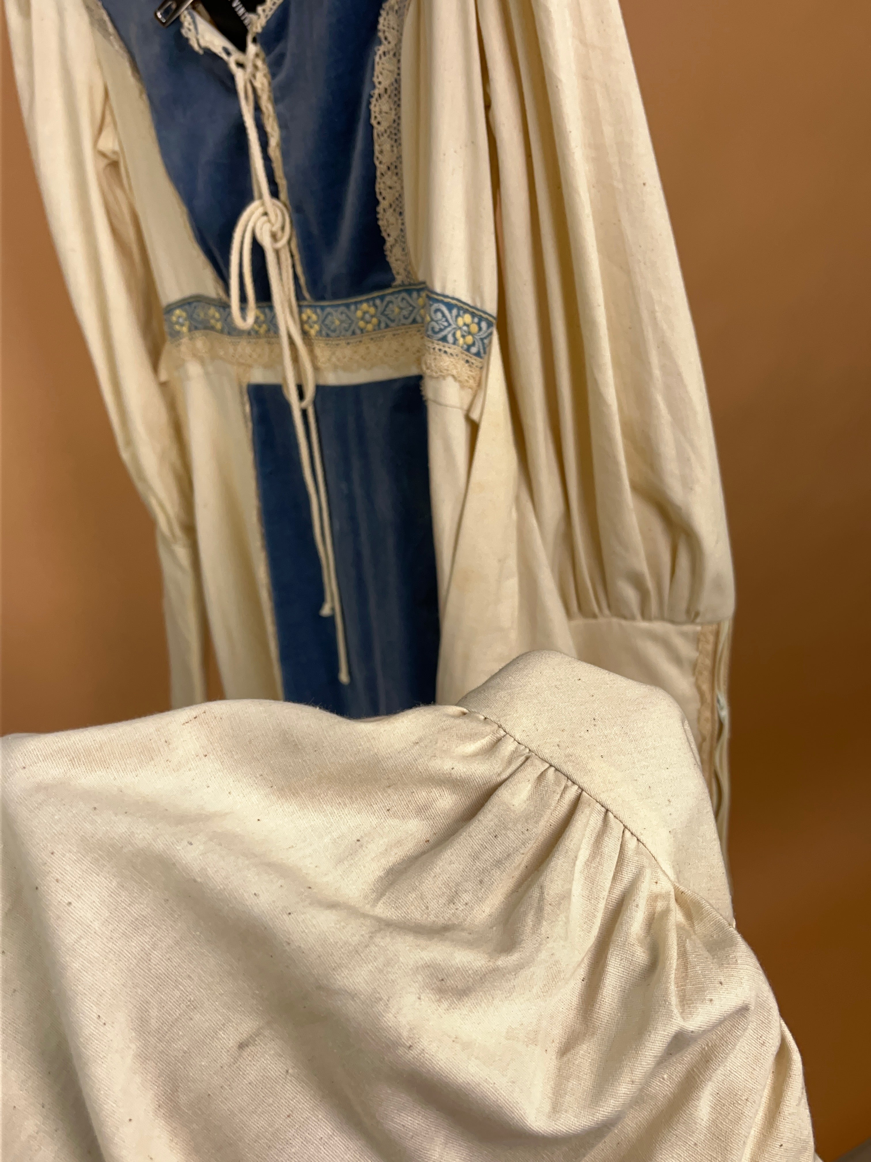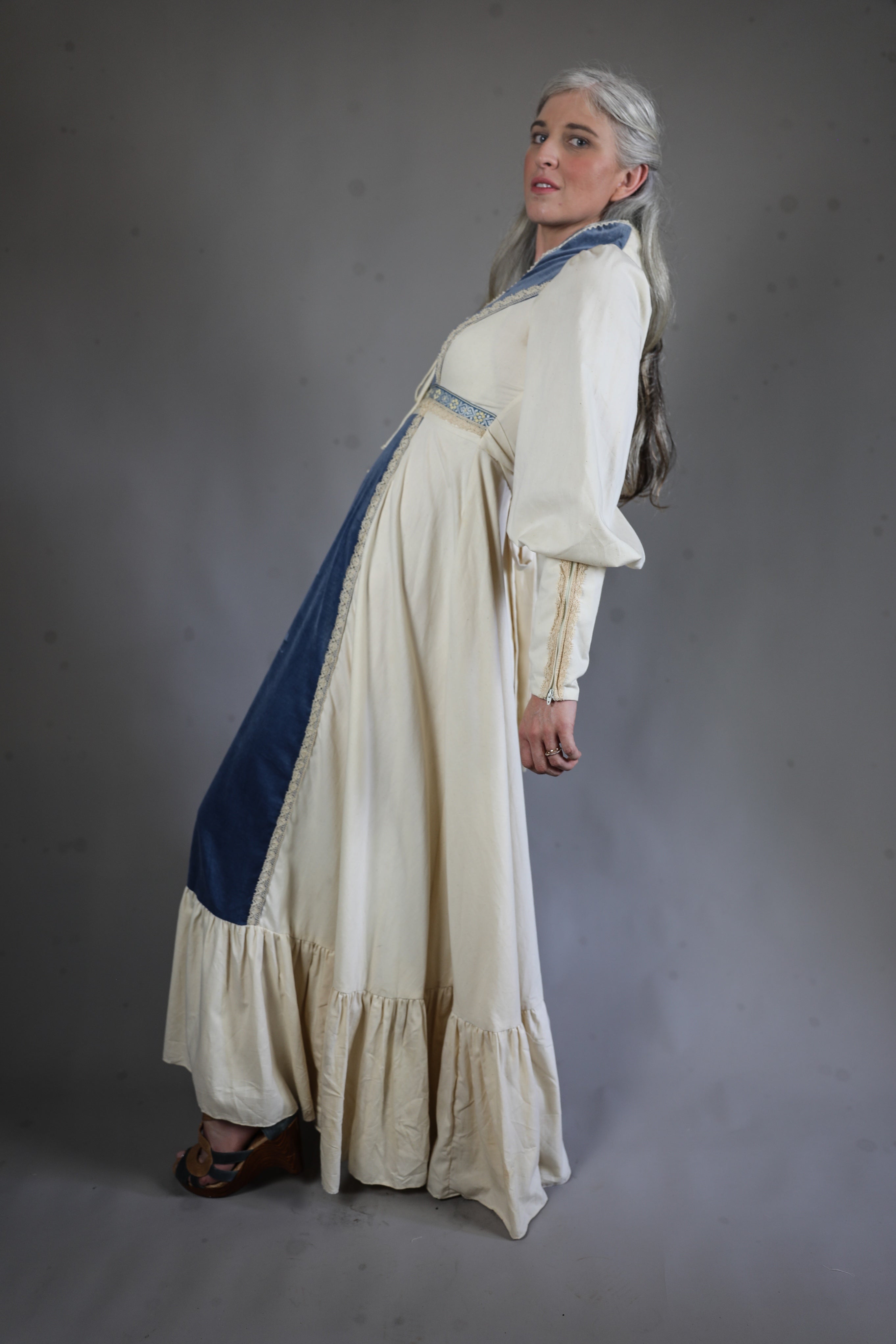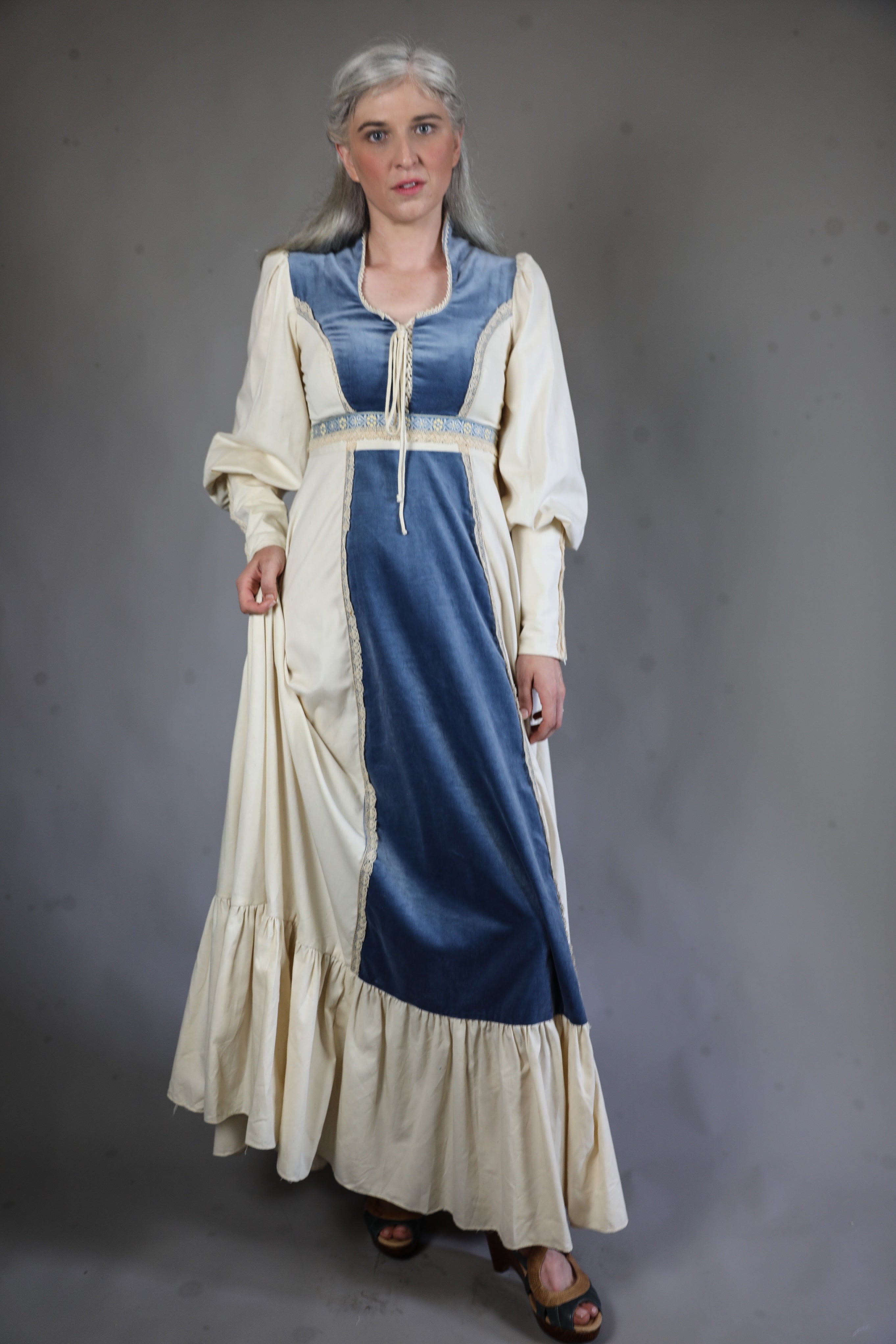 'Gunne Sax' Cream & Dusty Blue Velvet Prairie Dress